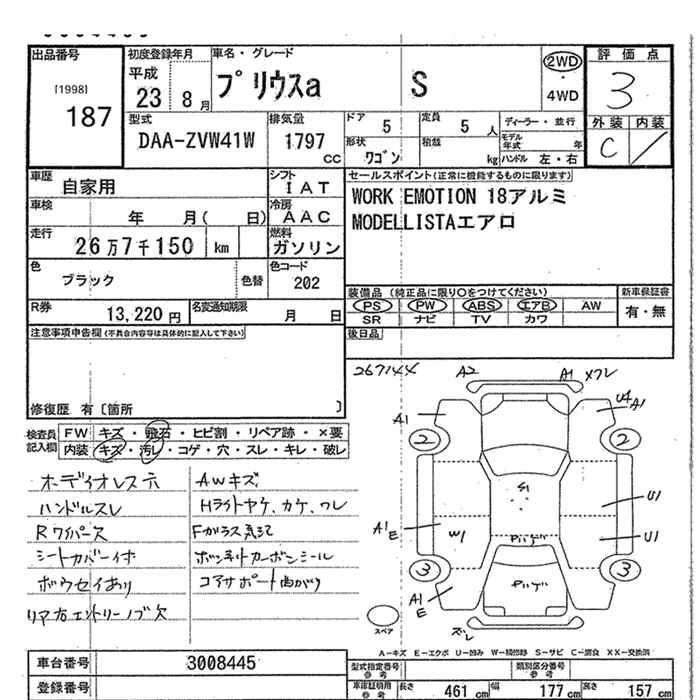 Год выпуска2011 Пробег 267 000 км КузовDAA-ZVW41W КомплектацияS