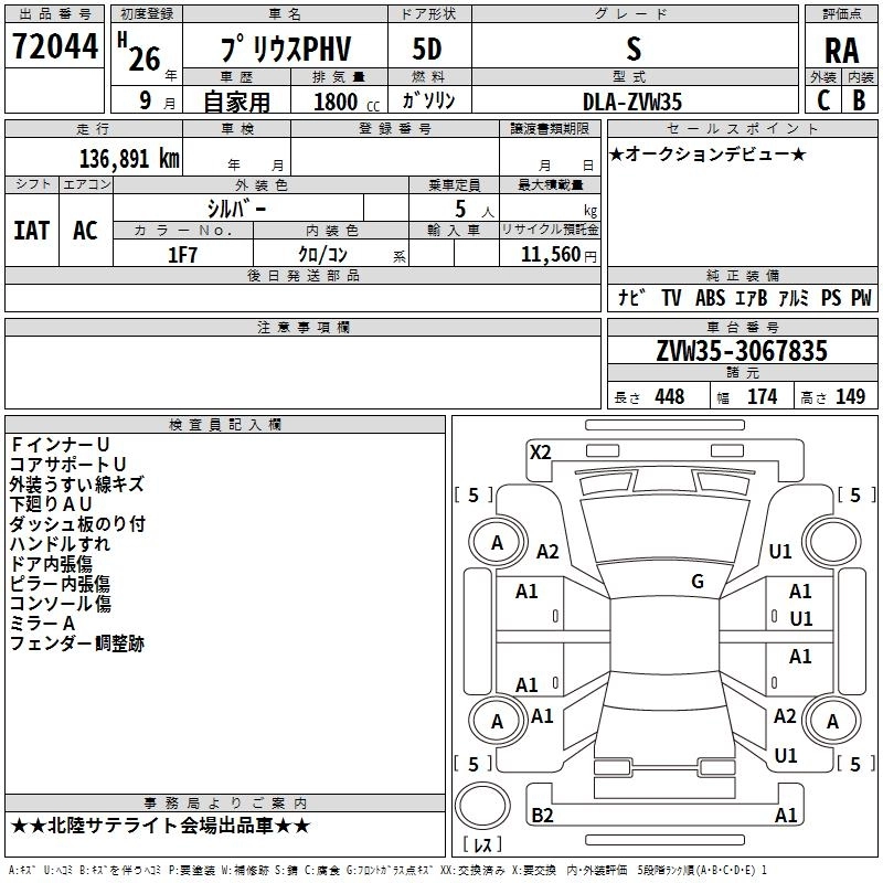TOYOTA PRIUS PHV 2014 г., лот № 72044