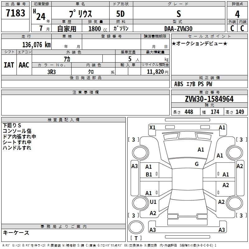TOYOTA PRIUS 2012 г., лот № 7183