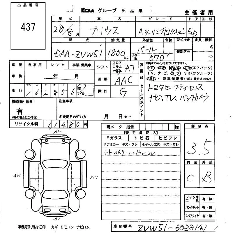 TOYOTA PRIUS 2016 г., лот № 437