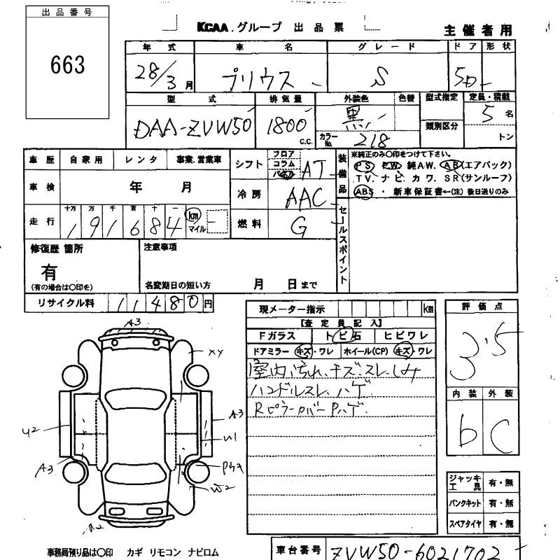 TOYOTA PRIUS 2016 г., лот № 663