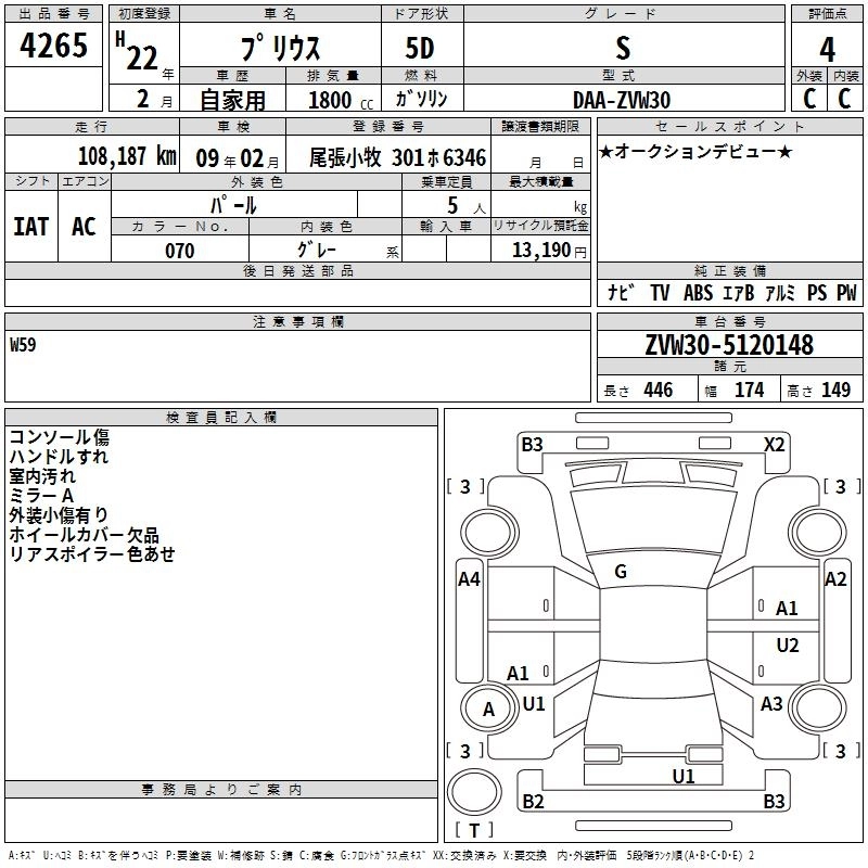 Статус выставлен на аукцион Лот 4265 Аукцион TAA Chubu Дата аукциона 23.10.2025