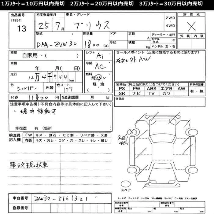 Стартовая цена авто на аукционе 20 000 ¥