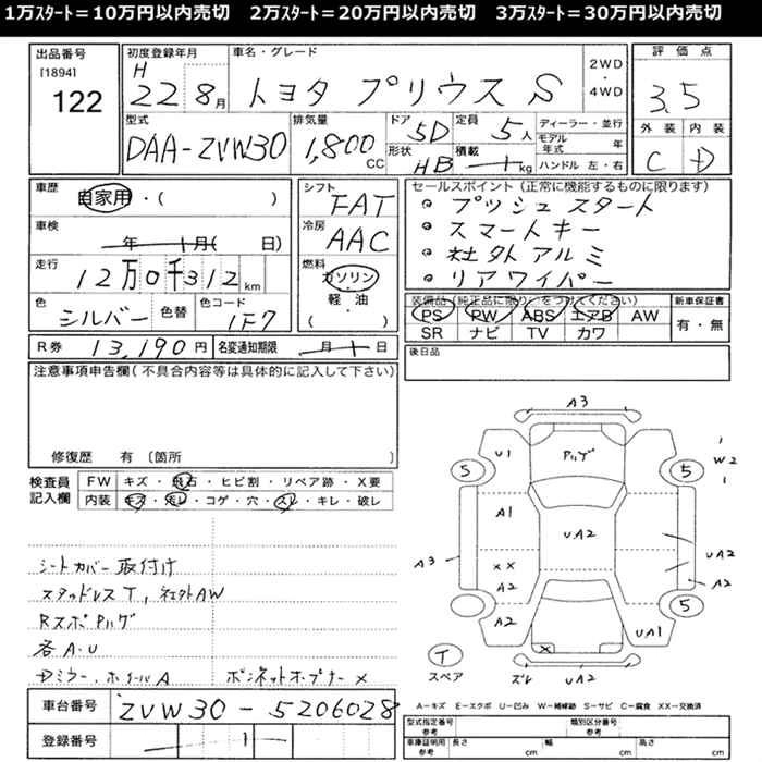 Стартовая цена авто на аукционе 30 000 ¥