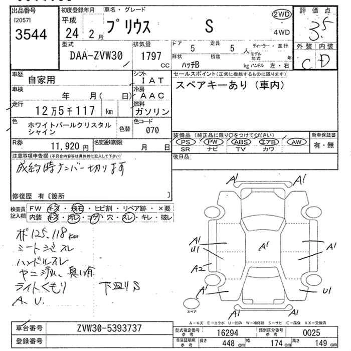 TOYOTA PRIUS 2012 г., лот № 3544