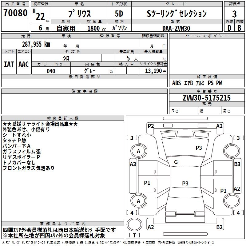 Статус выставлен на аукцион Лот 70080 Аукцион TAA Shikoku Дата аукциона 09.12.2025