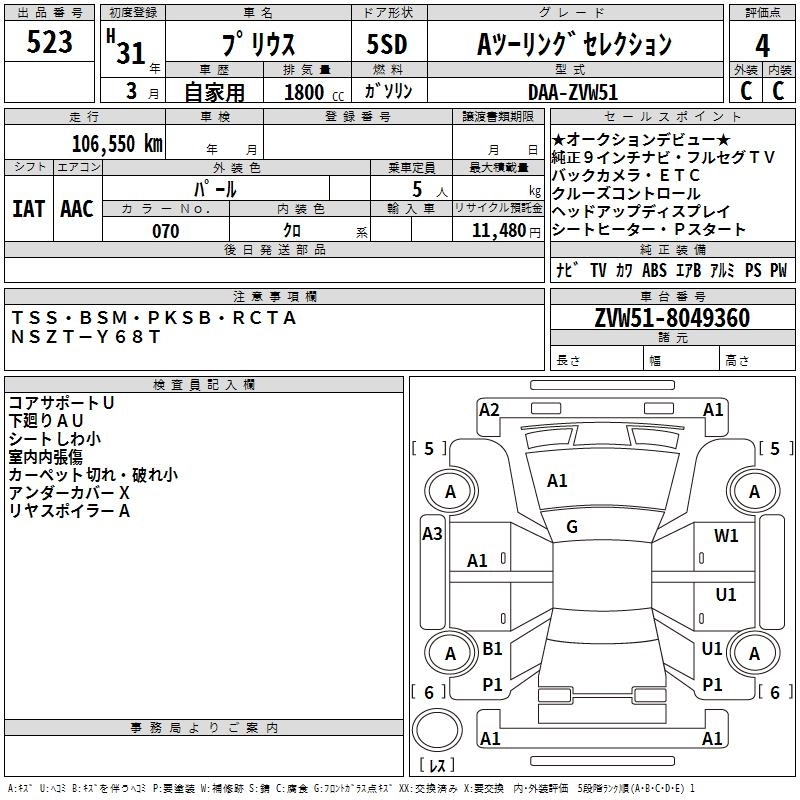 TOYOTA PRIUS 2019 г., лот № 523