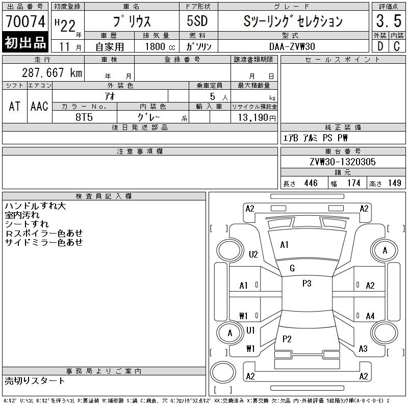 Год выпуска2010 Пробег 288 000 км КузовZVW30 КомплектацияS TOURING SELECTION