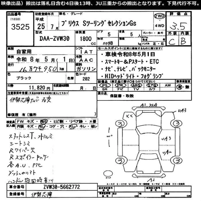 Статус выставлен на аукцион Лот 3525 Аукцион JU Mie Дата аукциона 09.12.2025