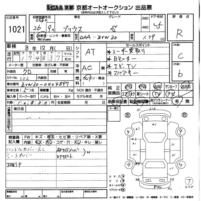 TOYOTA PRIUS 2014 г., лот № 1021