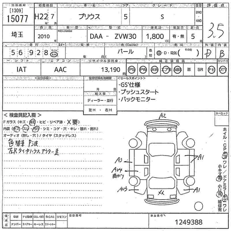 TOYOTA PRIUS 2010 г., лот № 15077