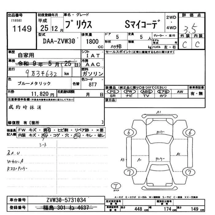 TOYOTA PRIUS 2013 г., лот № 1149