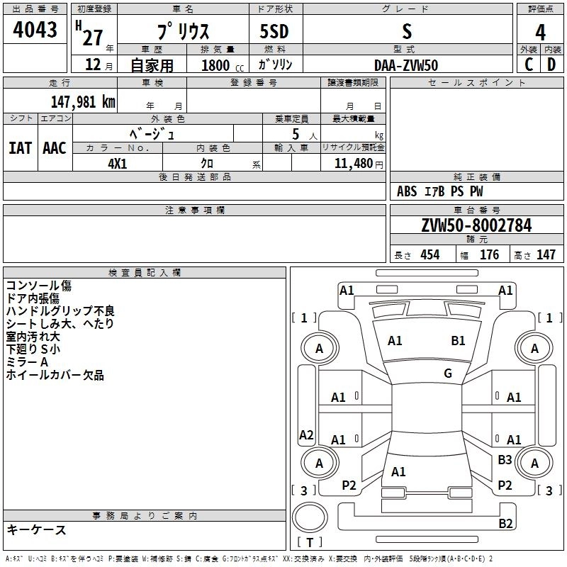TOYOTA PRIUS 2015 г., лот № 4043