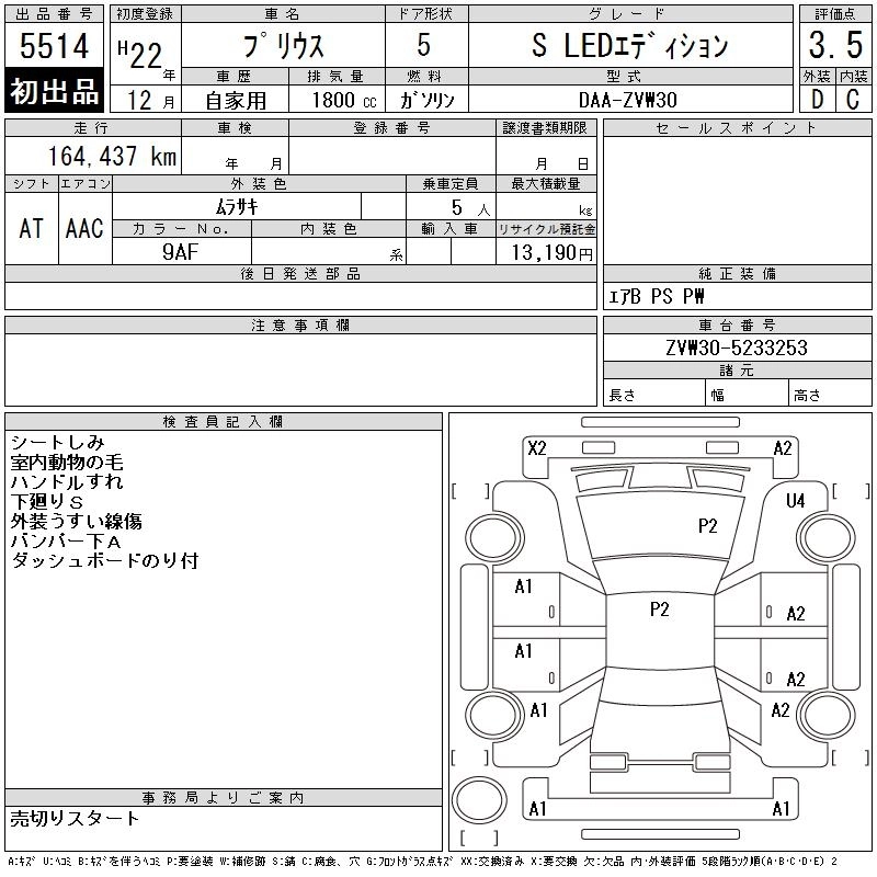 Год выпуска2010 Пробег 164 000 км КузовZVW30 КомплектацияS LED EDITION