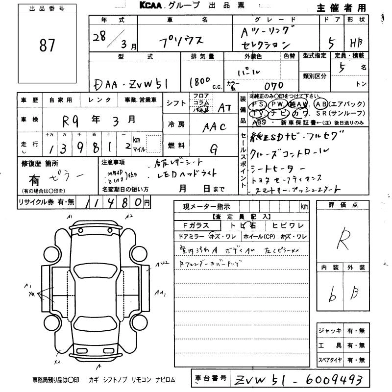TOYOTA PRIUS 2016 г., лот № 87