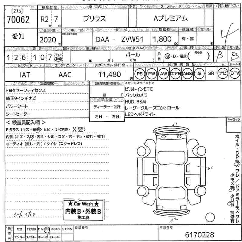 TOYOTA PRIUS 2020 г., лот № 70062