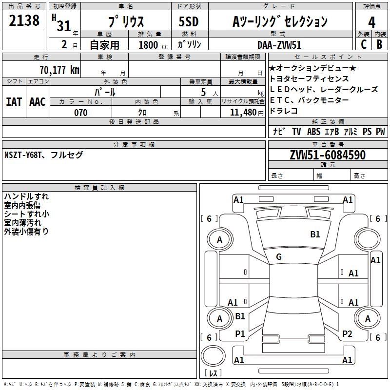 TOYOTA PRIUS 2019 г., лот № 2138
