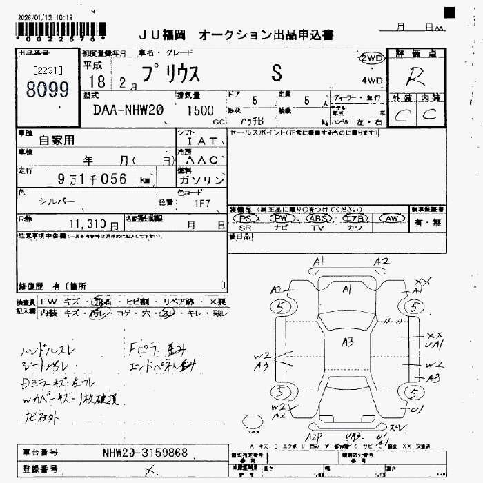 Статус продан Лот 8099 Аукцион JU Fukuoka Дата аукциона 23.01.2026