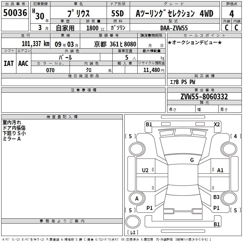 TOYOTA PRIUS 2018 г., лот № 50036