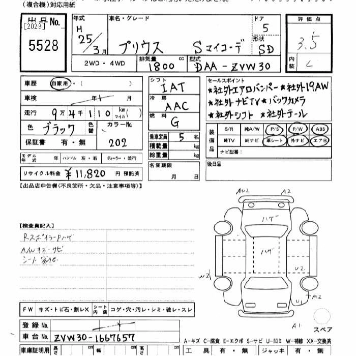 TOYOTA PRIUS 2013 г., лот № 5528