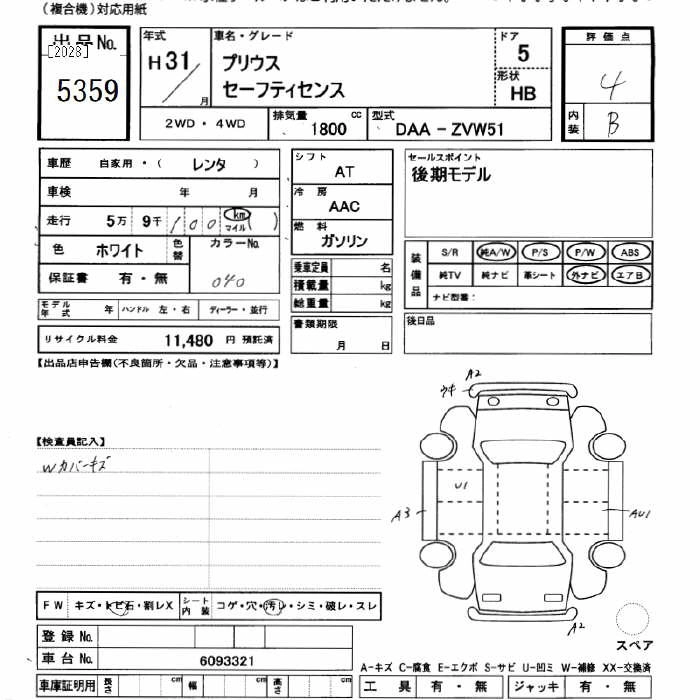 TOYOTA PRIUS 2019 г., лот № 5359