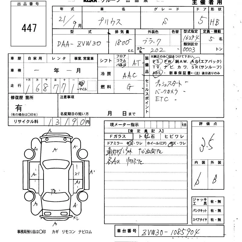 TOYOTA PRIUS 2009 г., лот № 447