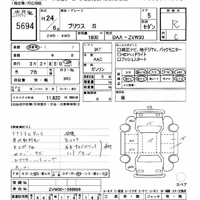 TOYOTA PRIUS 2012 г., лот № 5694