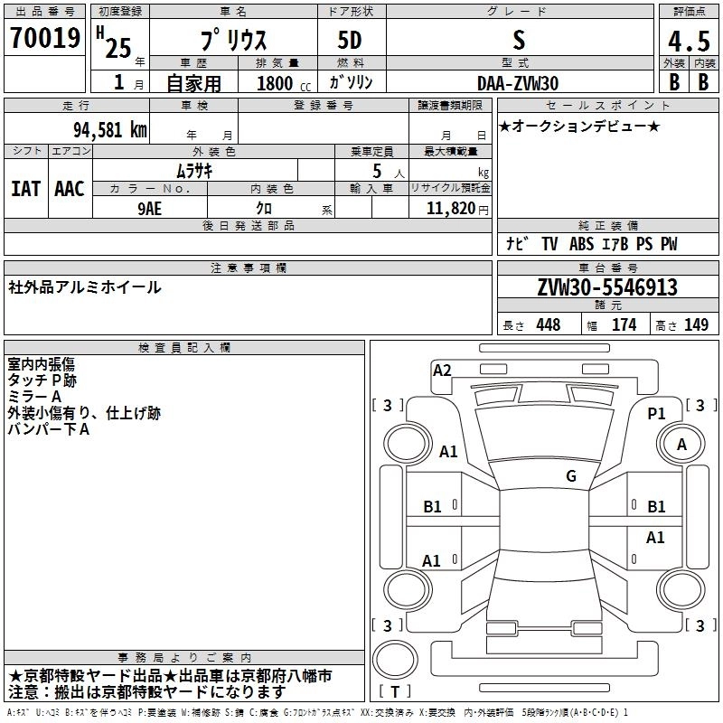 TOYOTA PRIUS 2013 г., лот № 70019