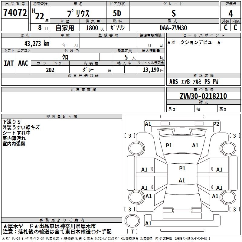 TOYOTA PRIUS 2010 г., лот № 74072