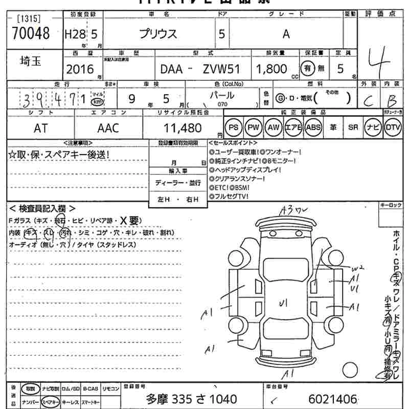 TOYOTA PRIUS 2016 г., лот № 70048
