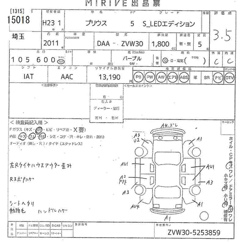 Год выпуска2011 Пробег 106 000 км КузовZVW30 КомплектацияS_LED EDITION