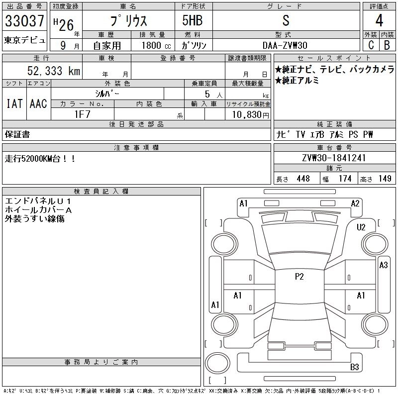 TOYOTA PRIUS 2014 г., лот № 33037