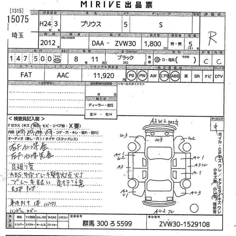 TOYOTA PRIUS 2012 г., лот № 15075