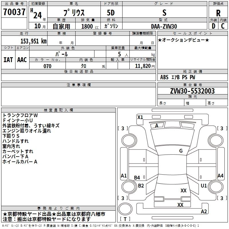 TOYOTA PRIUS 2012 г., лот № 70037
