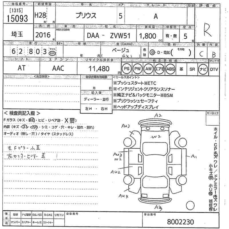 TOYOTA PRIUS 2016 г., лот № 15093