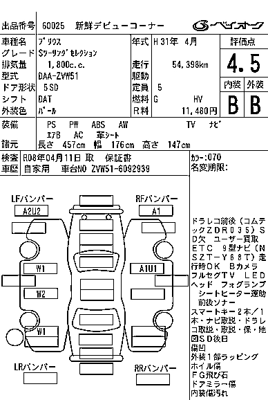 TOYOTA PRIUS 2019 г., лот № 60025