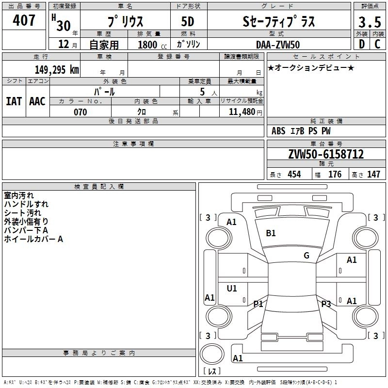 TOYOTA PRIUS 2018 г., лот № 407