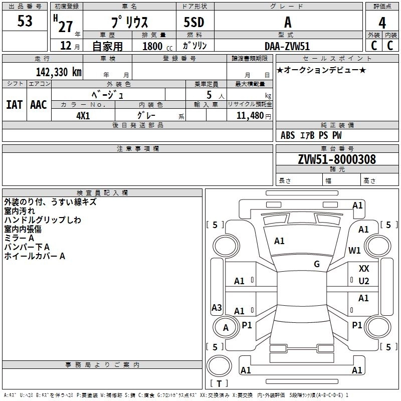 Год выпуска2015 Пробег 142 000 км КузовZVW51 КомплектацияA