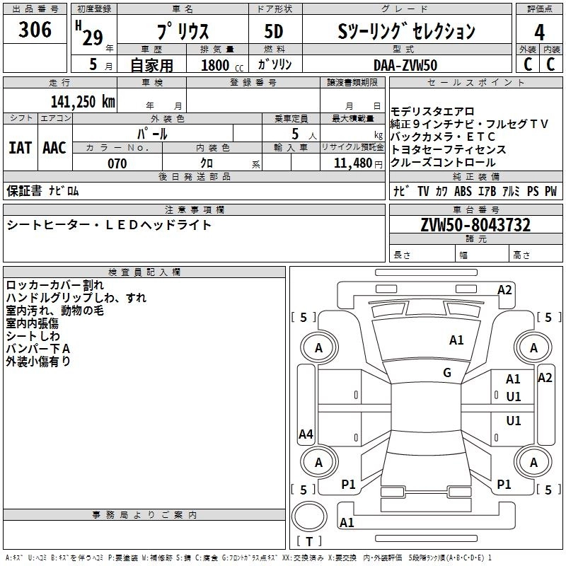 TOYOTA PRIUS 2017 г., лот № 306