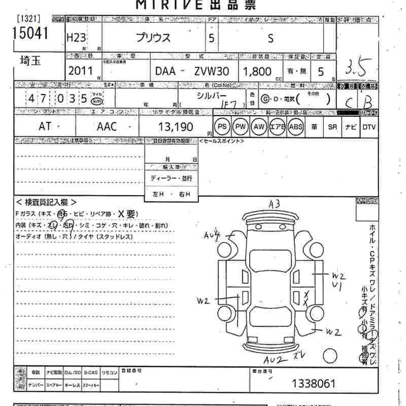 Статус выставлен на аукцион Лот 15041 Аукцион MIRIVE Saitama Дата аукциона 11.03.2026