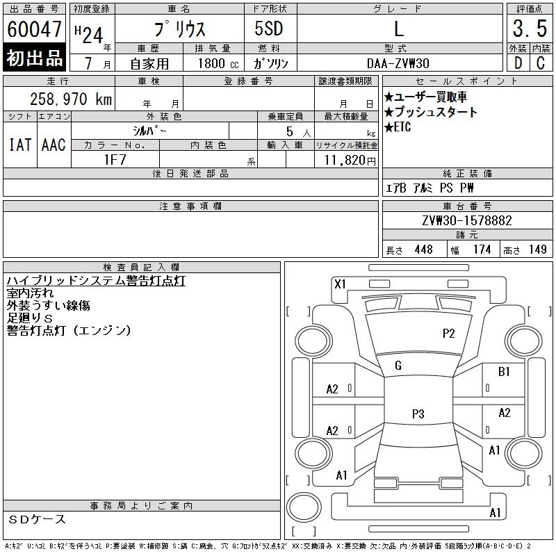TOYOTA PRIUS 2012 г., лот № 60047