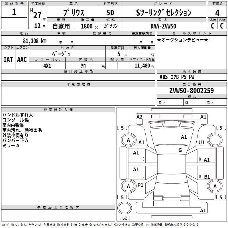 TOYOTA PRIUS 2015 г., лот № 1