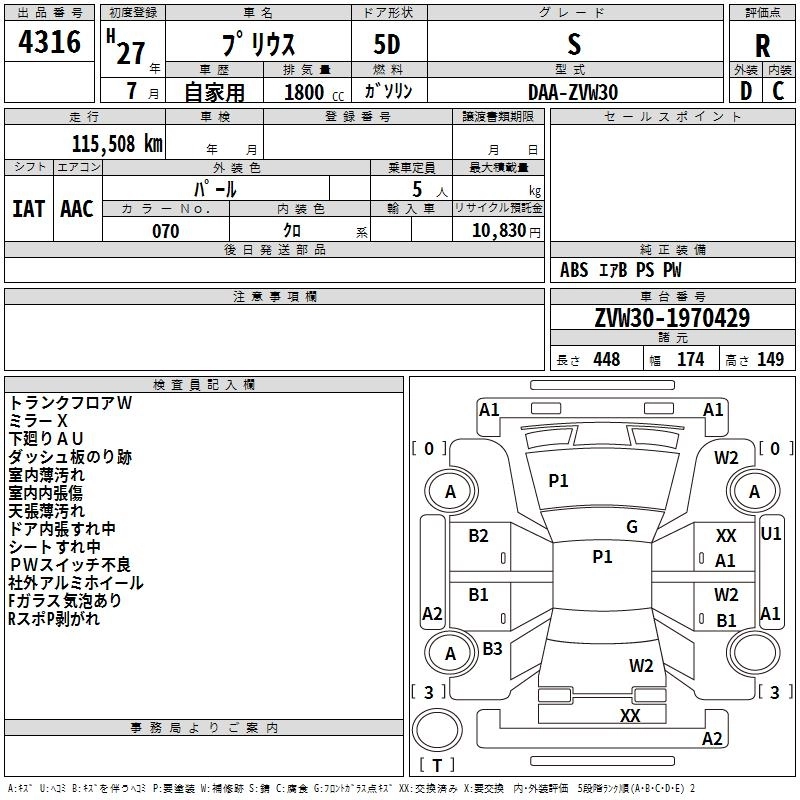 TOYOTA PRIUS 2015 г., лот № 4316