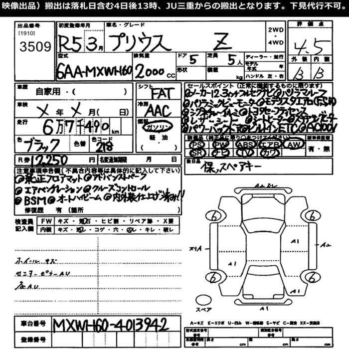 Итоговая цена авто на аукционе 2 249 000 ¥