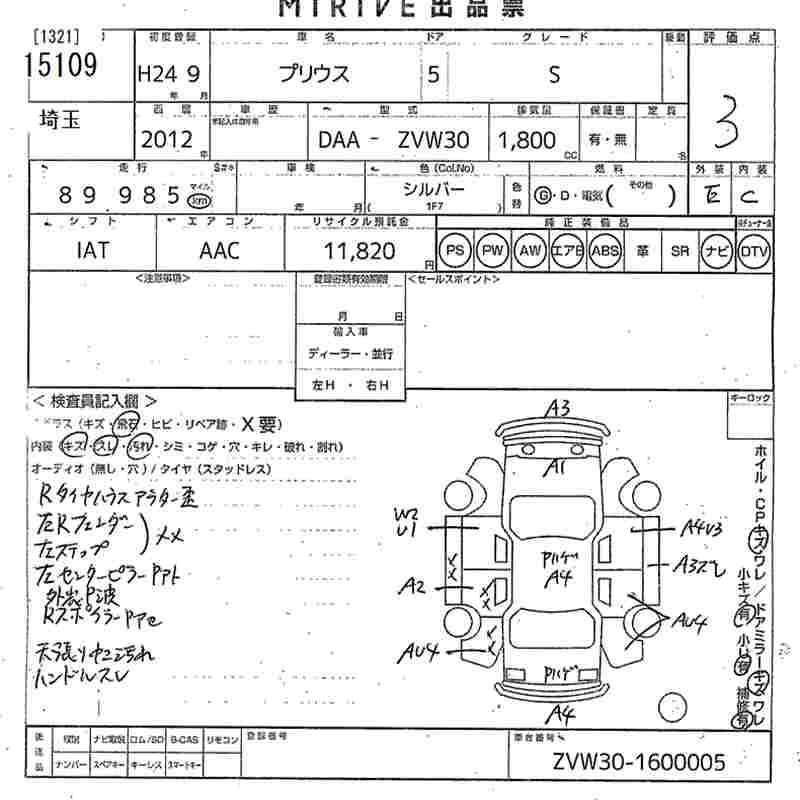 TOYOTA PRIUS 2012 г., лот № 15109