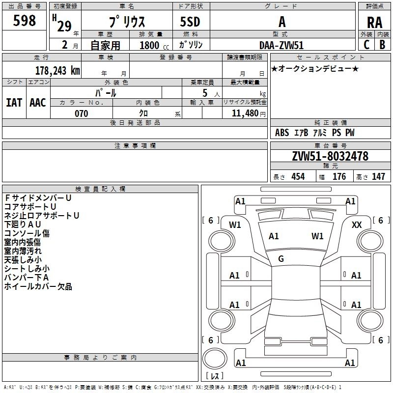 TOYOTA PRIUS 2017 г., лот № 598