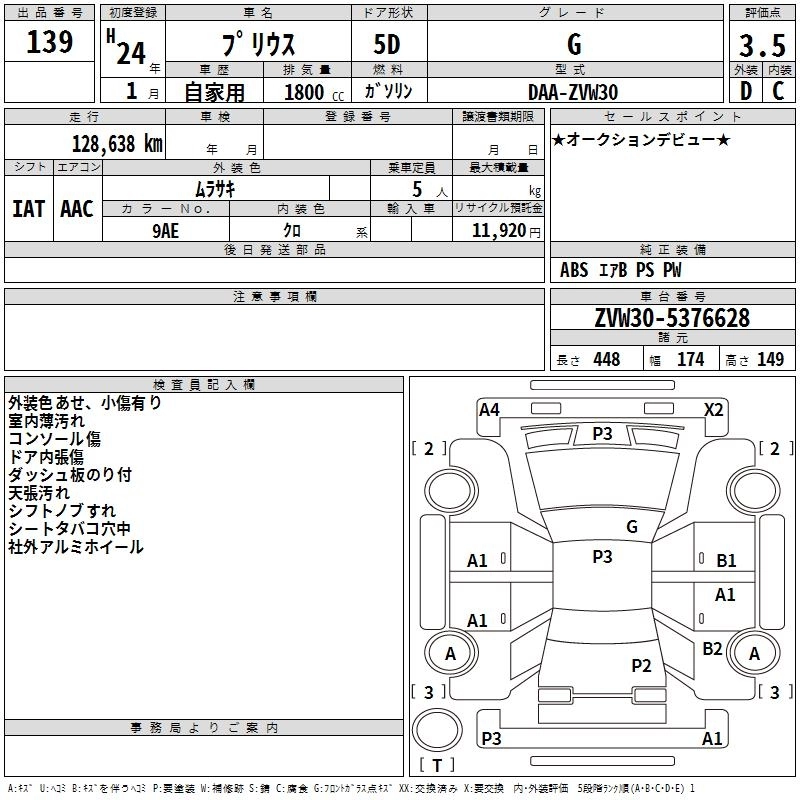 TOYOTA PRIUS 2012 г., лот № 139