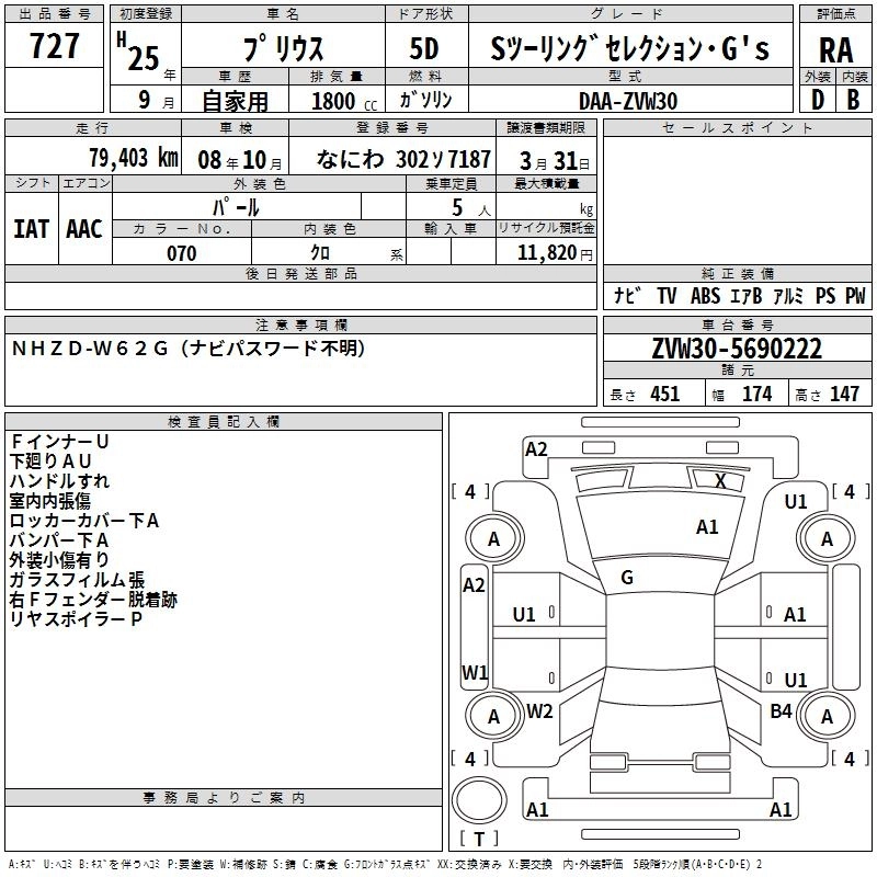 Год выпуска2013 Пробег 79 000 км КузовZVW30 КомплектацияS TOURING SELECTION *G'S