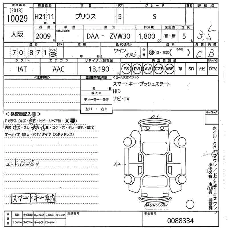TOYOTA PRIUS 2009 г., лот № 10029