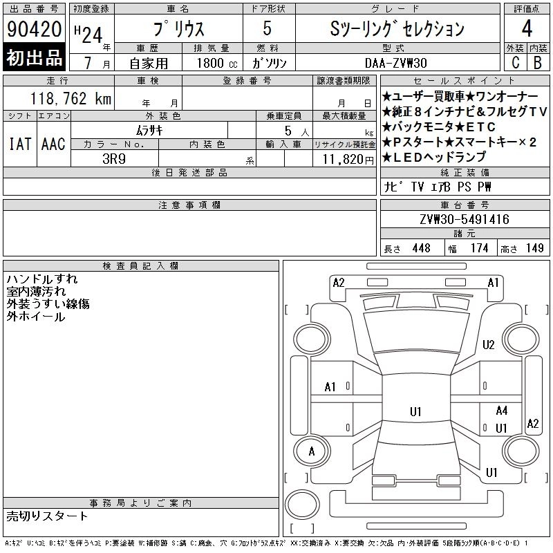 Статус выставлен на аукцион Лот 90420 Аукцион CAA Chubu Дата аукциона 11.03.2026